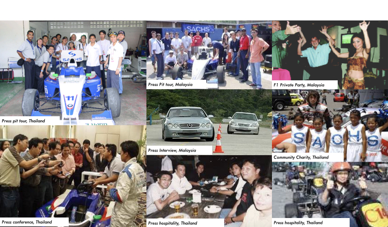 Our German headquarters had an active global motorsports sponsorship program. It sponsored hi-tech products for eight F1 teams including Ferrari and BMW and also sponsored other races such as Porsche Carrera Cup, 24 Hours of Le Mans, World Rally Championships, Formula BMW, Super V8 Championships etc. Most of these global races had a racing calendar in Asia Pacific as well.