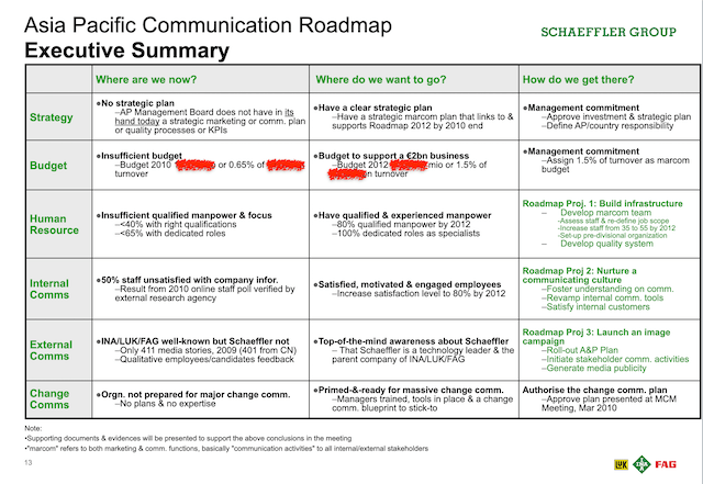 Communication gap analysis and audit. They poured 50 case studies on some of the best practices from leading international companies especially with a manufacturing footprint in Asia Pacific. We discussed and debated and distilled the most suitable ideas to address areas of improvement in APAC communications which we identified following a gap analysis and communication audit.