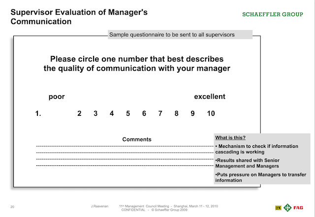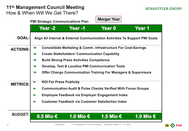 Furthermore Schaeffler, as a family business, was notorious for being secretive at that time with regards to sharing information regarding business performance. As such it was very conservative in its communication policy with regards to sharing information with media, customers and sometimes even staff. As such we drastically reduced our own APAC PMI ambitions but relied on my proposal as a compass for our reduced PMI activities in the region.