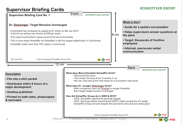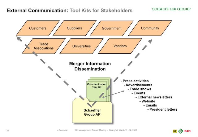 I would divide these crisis communication activities into two categories. The first category was related to Schaeffler’s hostile takeover of the Continental Group in 2008 and its post-merger integration (PMI) activities in the following years. The second category of crisis communication activities would be unexpected crisis situations such as natural disasters, industrial accidents, labour disputes etc as outlined below. However, I have not been able to provide examples of all the crisis communication activities in which I was a lead or was involved in except for the ones from 2009 to 2011.