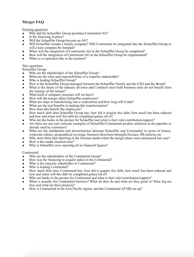 In reality, our merger communication was completely lead by our German headquarters necessarily so as they were on the frontline. My responsibility was however, in close alignment with our APAC management, to distribute consistent and clear key messages, offer regular and accurate merger updates and ensure that our managers were enabled and equipped to explain implications and impact for the employees and to answer questions and receive feedback.