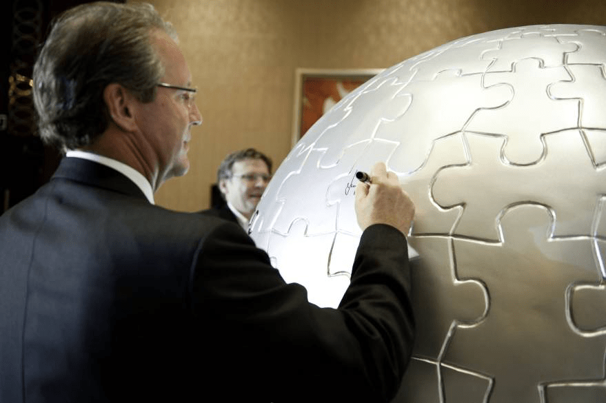 We built a large sized globe for the management level launch and designed an engagement ritual for the company’s top 40 Asia Pacific leaders to sign on the puzzle pieces on the globe. Each puzzle piece had one of the APAC leader’s signature on it and it was a promise that everyone will work together to make the strategy happen. We also developed a launch souvenir that replicated the globe structure. Most of the credit should go to my team and my agencies who worked tirelessly for three months to bring this concept into fruition.