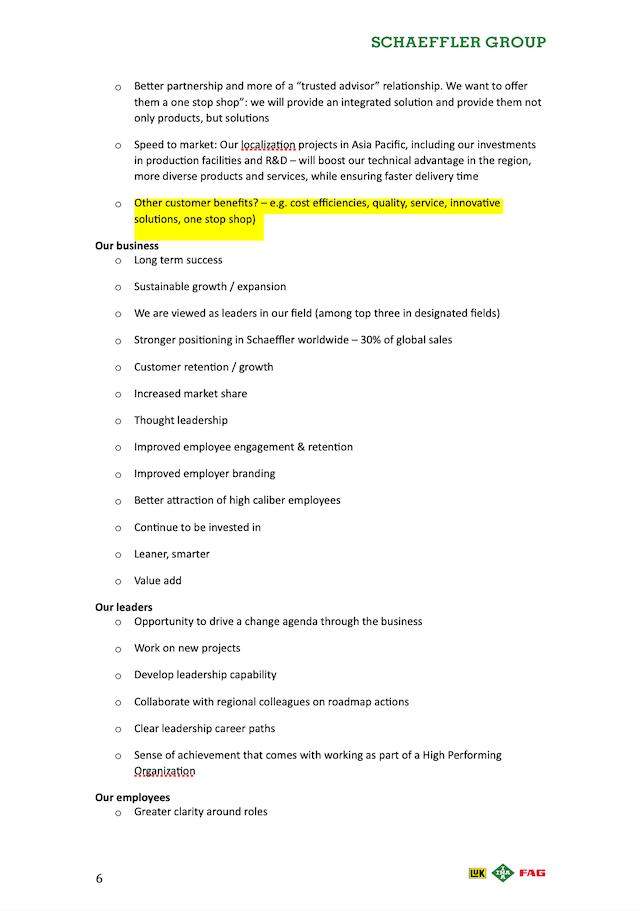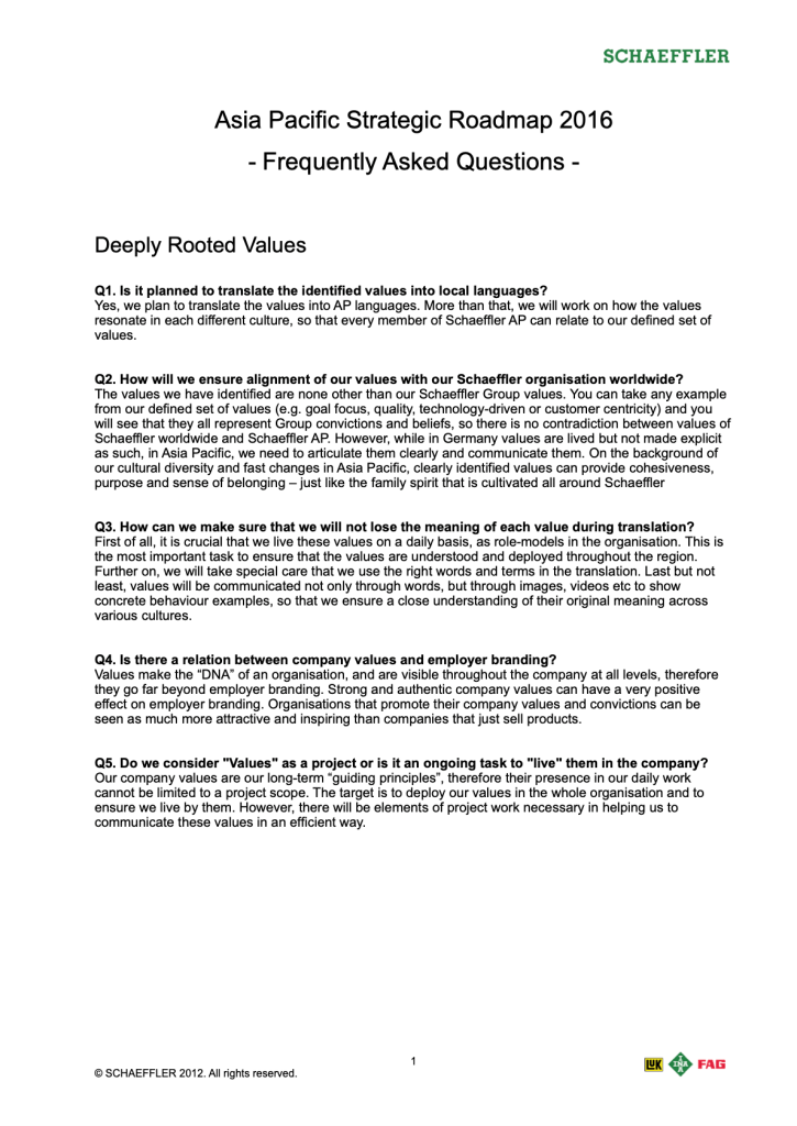 I worked with my APAC team to develop a comprehensive FAQ about the strategic roadmap for the managers and staff (see below). I can recall that it took several months after that to have it aligned with our APAC leadership team as it was a long process.