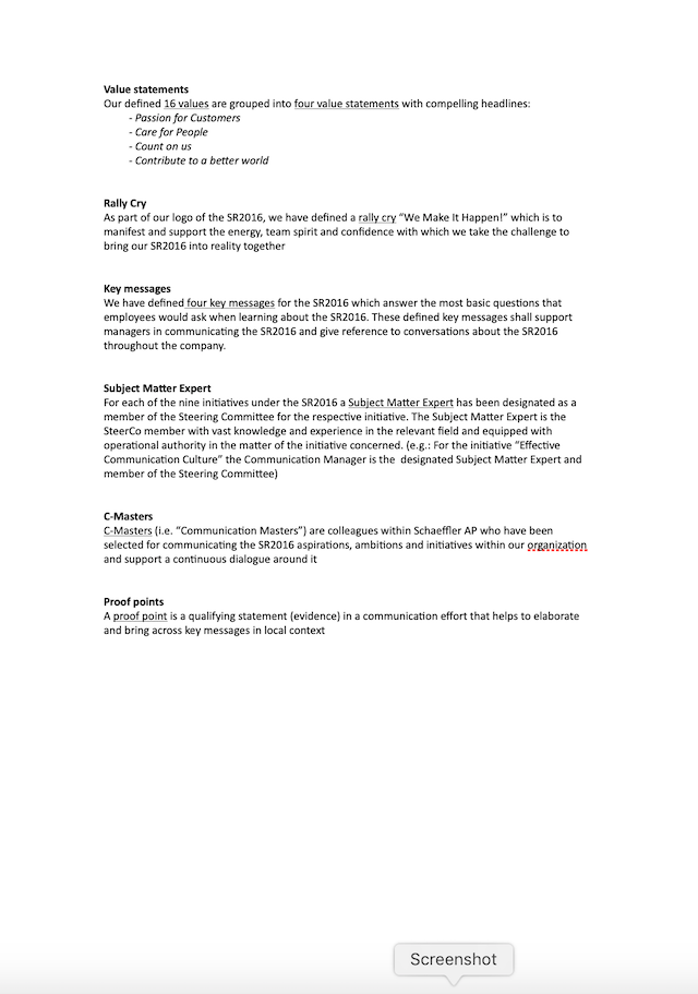 Below is an extract of a work-in-progress document of a key messaging effort for the strategy roll-out. Although it is not the final version, it serves to give an idea the amount of care and attention my team and myself poured into finalising these four key messages and proof points.