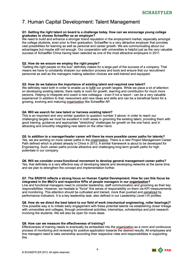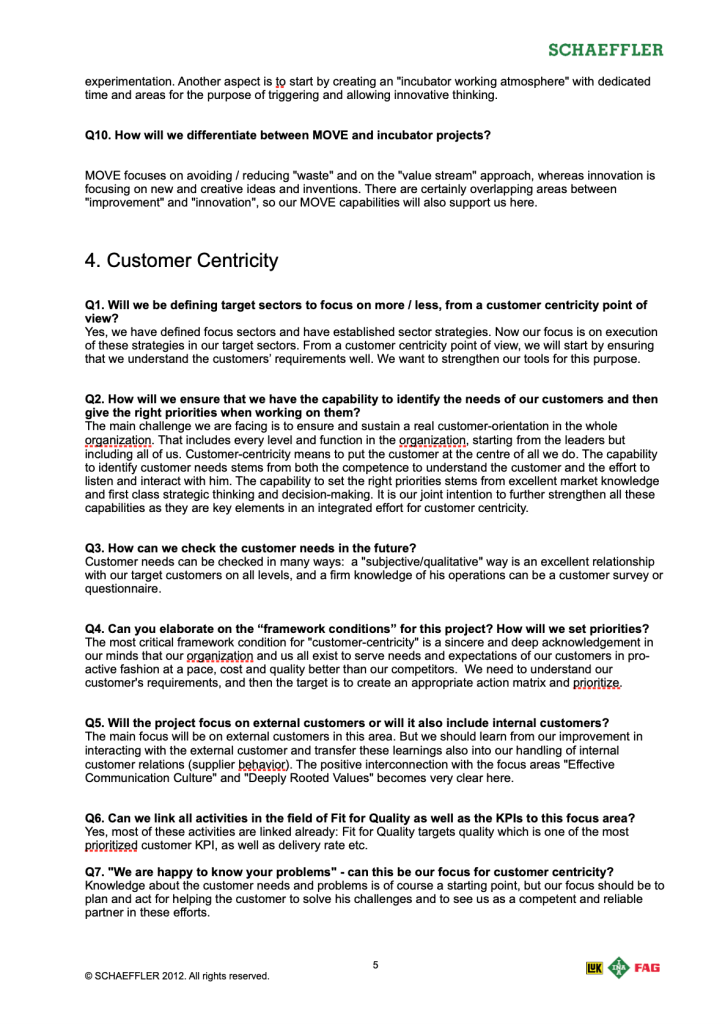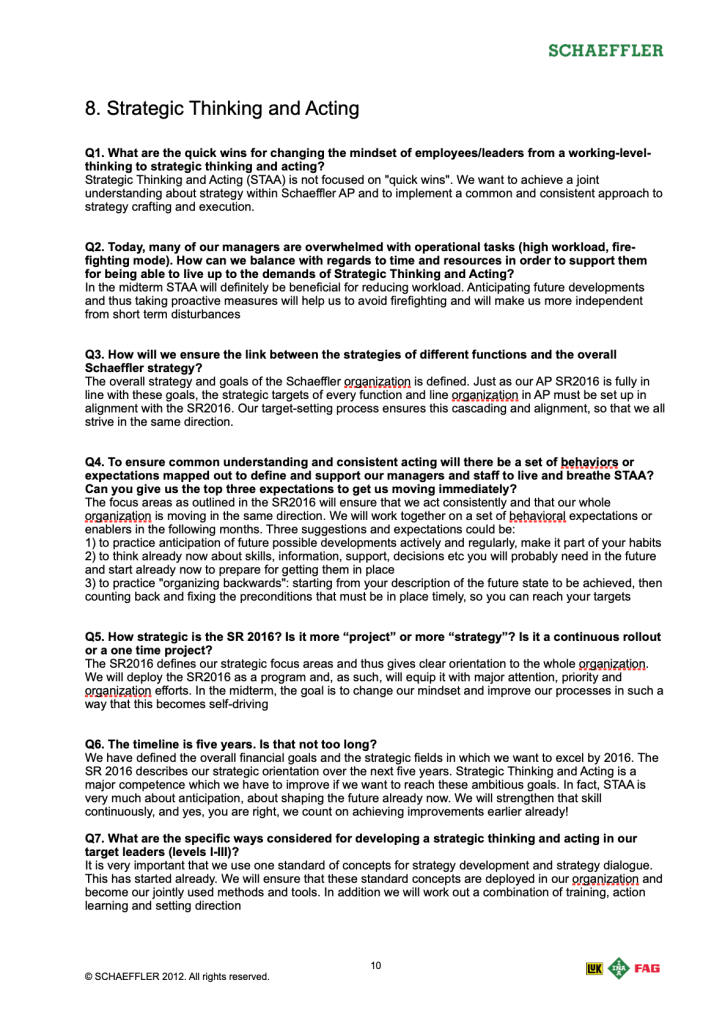 (8) Everything the managers and staff needed to know about the company’s new strategy in one comprehensive FAQ