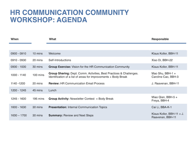 I identified HR Division staff who were frequently leading and supporting the communication activities and brought them together as and into a “HR Communication Community”. These are colleagues who were either leading or supporting communication activities such as emails, launch of new HR initiatives, talent management campaigns, new digital solutions, recruitment events in campus etc.