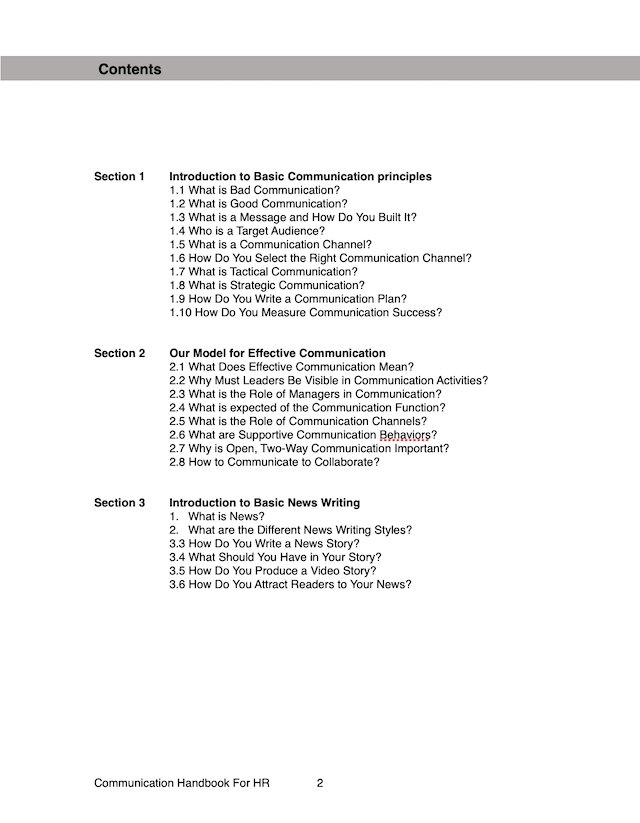 I wrote a manual for the changes in the HR Division’s communication activities. These were the main sections of the manual: