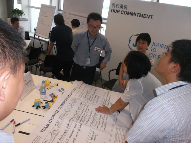 | Best Practices | > Equal focus on people and business in agenda. Workshop was divided into 2 parts: part I focusing on the people side of the change and part II focusing on the business side of the change > Cross-functional Collaboration. I developed the concept and delivered the workshop but roped in the project manager and a representative from the finance department to be co-moderators > Audience segmentation. Workshops were divided into for senior managers, managers and assistant managers > Strong Leadership visibility. Impacted leaders were invited to deliver a speech at the beginning of the workshop. Speech points were provided to control messaging. > Clear key message. A clear key message “You are in the driver seat” was communicated throughout the workshop > Use of real life case studies. A hypothetical case study was used to discuss what went wrong in a change program. Subsequently real life case studies were used to discuss issues > Coaching on managing change. Basic principles in change management such as change curve and engagement curve was introduced to managers > Change communication training. A team change communication template was introduced and managers were coached on how to lead change communication in their departments > Volunteers. Managers were asked to nominate staff to form a organising team for the launch event which was a sign of commitment > Free gifts. Managers were given a useful tips printed at the back of mobile phone covers > Fun elements. Quiz, fun moments, group photo taking were incorporated into the workshop > High participation rate. High participation rate of 88/91 due to advance invitations and follow-up with managers to attend > Make-up rounds. Additional rounds were held for those who not make it for the earlier rounds > Transparency to management. Participation status and workshop progress was shared in BBT and BBF circle meetings | |