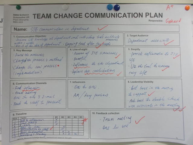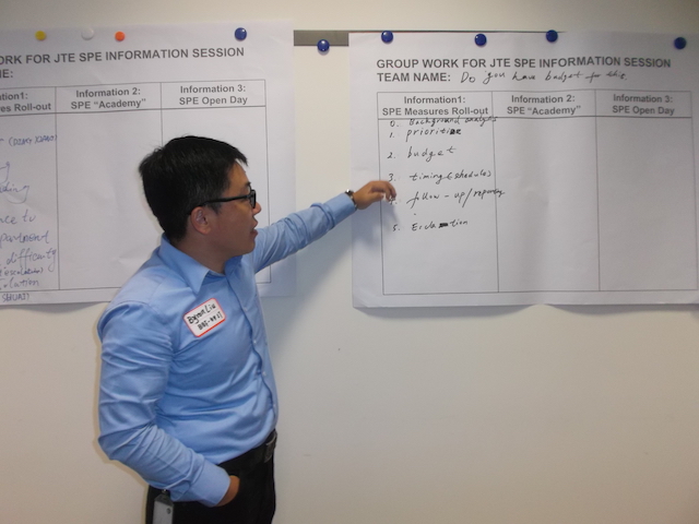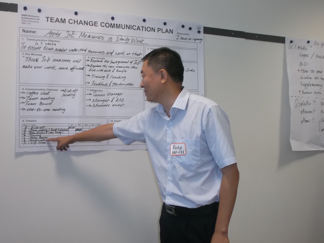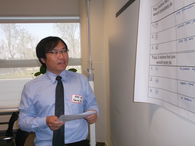 | Areas for improvement | > Link to core values. A connection to the company’s core values could have been made. > Locations. Some case study workshops could have been organised in Plant Dadong instead of only in Plant Tiexi > Short discussion on messaging needed. Even though speech points were given to leaders, they did not use it and the messaging was not clear > Lunch sponsorship. Lunch in the company canteen can be sponsored |